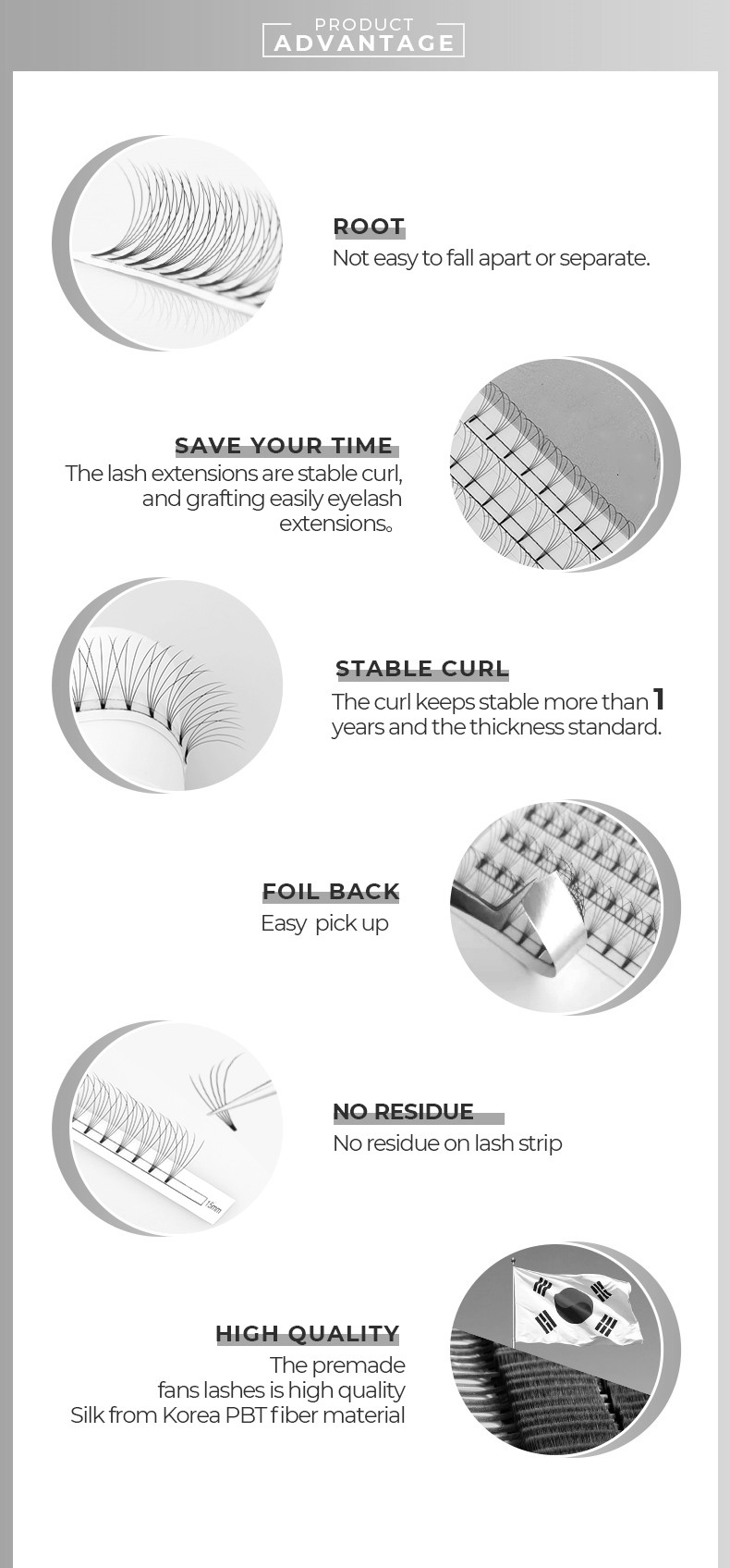 All lash extensions are made from high-quality PBT material, featuring a soft, matte texture that feels comfortable on the eyes. Various lengths are available, and mixed packages allow for flexible customization according to client needs.