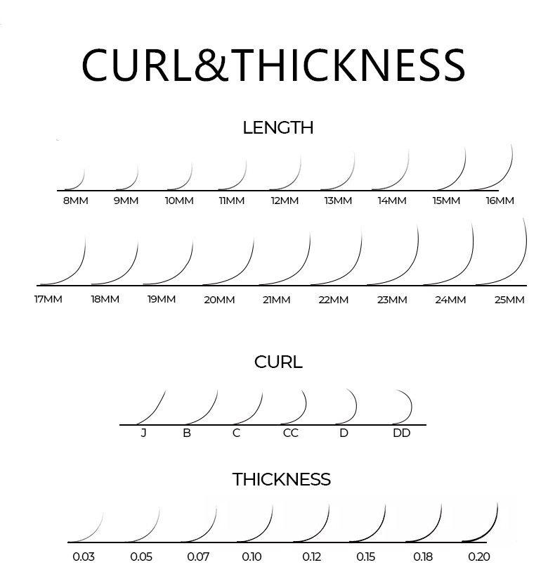 C Curl: Soft and natural, closely resembling the curl of real lashes for a subtle enhancement.